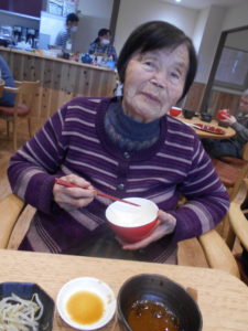 普通の餃子のほかに、キムチ入り餃子、ベーコンポテト餃子、チョコバナナ餃子を作りました。「チョコバナナ入りは初めて食べたけど、甘くておいしかったから家でも作りたいわ」と喜んでくださいました(#^^#)
