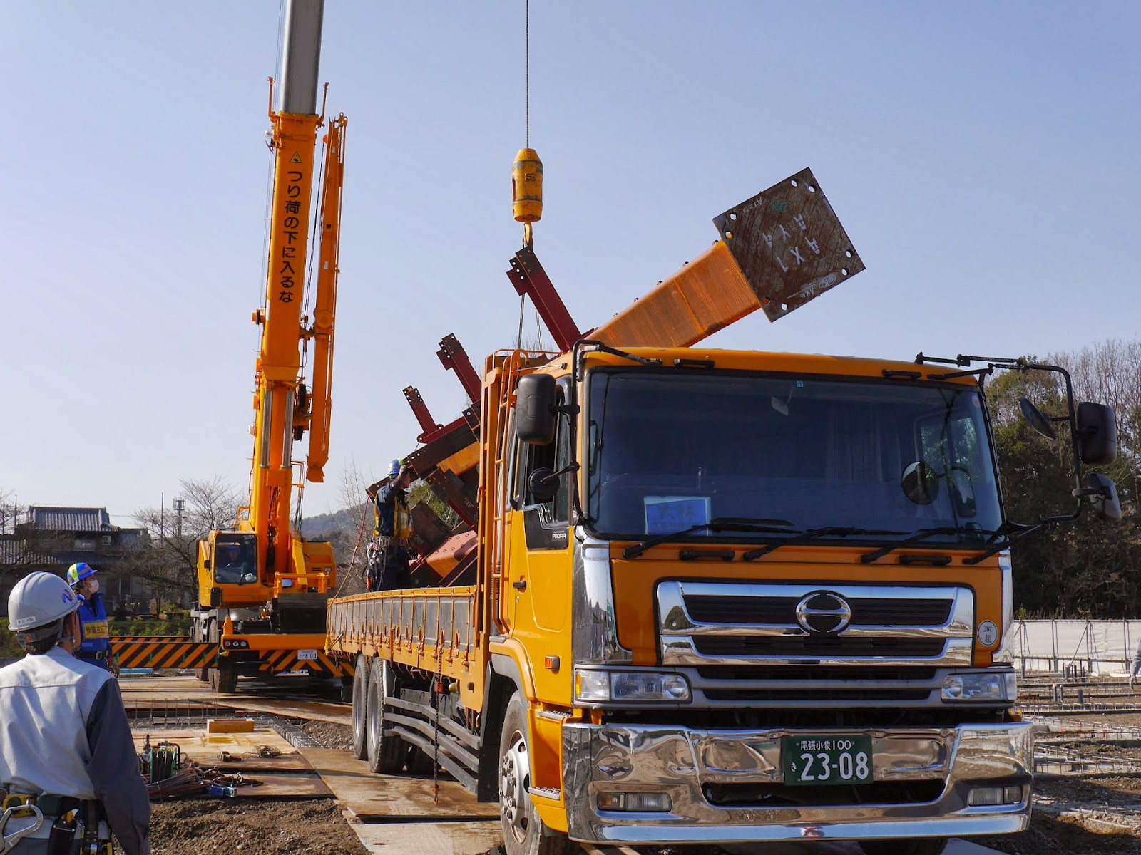 現場に搬入される1本目の柱
