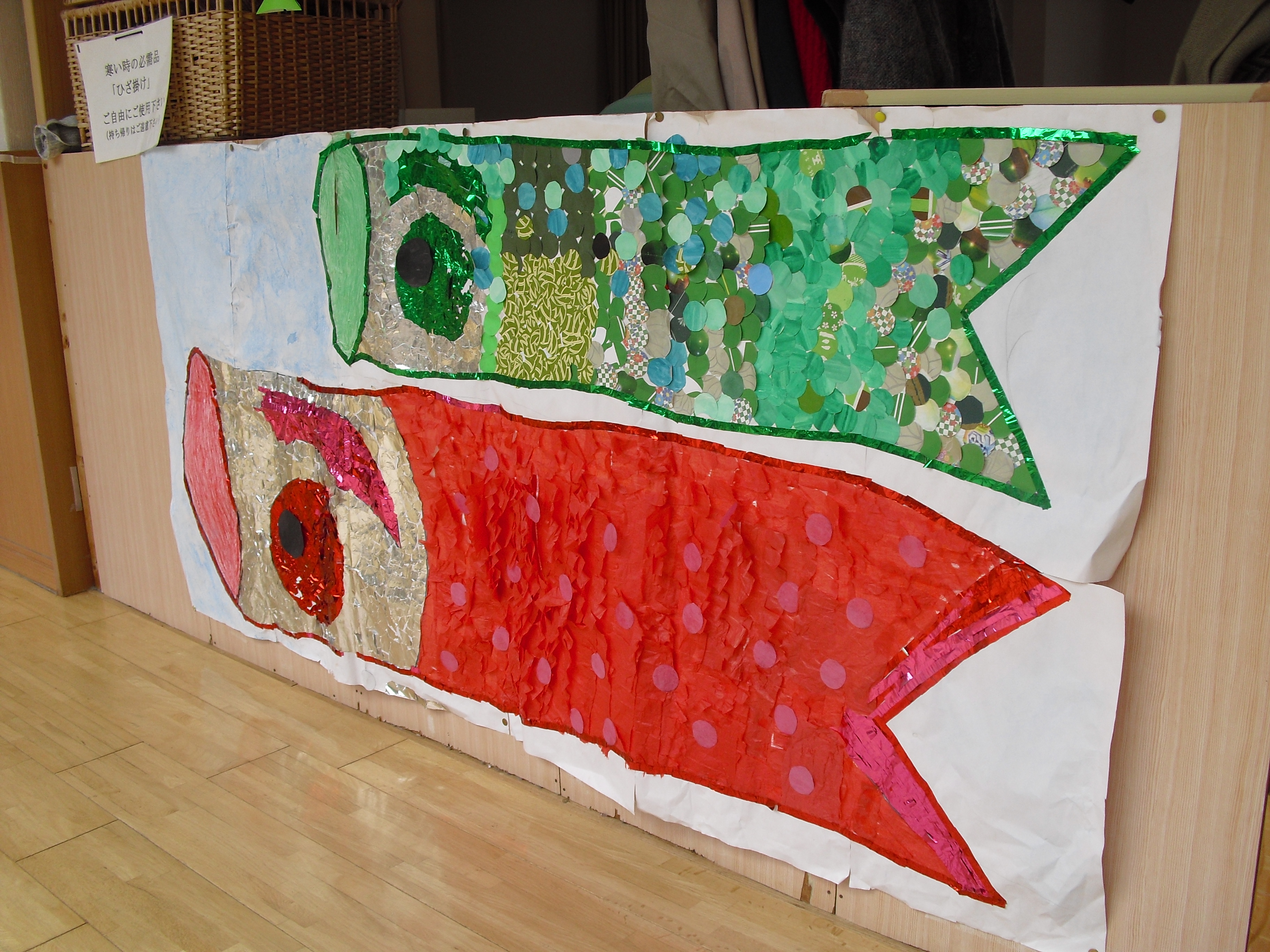 廊下では大きな鯉のぼりが泳いでいます(^o^)