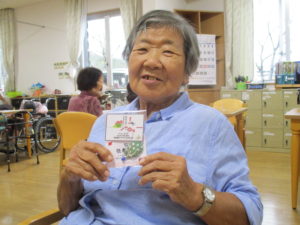 2021.09.22 デイサービスセンターぬく森 敬老のお祝い! 9月20日は敬老の日です。デイサービスセンターぬく森では、利用者様にプレゼントを用意いたしました。草履のストラップです。転倒防止や健康に歩いて過ごせるように願いを込めて職員が手作りで作りました。ぬく森のコーヒーチケットと一緒にお渡ししました。 皆様とても喜んでくださいました。 皆様が健康に元気で過ごせますように。 by tatsu