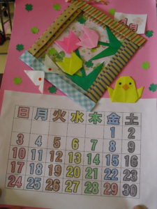 午前中は、先週に引き続き4月のカレンダー作り