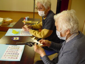 皆さん協力しながら、ワイワイガヤガヤ楽しんでお花を作っていました