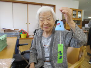 2024.07.02 デイサービスセンターぬく森 風鈴作り🎐 梅雨明けまでもう少し・・ 今日は、夏の風物詩【風鈴🎐】作りにチャレンジしました。 まずは、①小さな植木鉢を用意してカラフルに色付けを行います。 ②風を受ける短冊を選んでいただきます。 ③ここが肝心!音が鳴るように紐の長さを調整します。 皆さん真剣な表情で色付けを行ってくださり、とてもカラフルな 風鈴が出来上がりました。 今年の夏はぜひご自宅に吊るしていただいて、素敵な音色を聴きながら 涼んでいただければ嬉しいです! デイサービス職員より