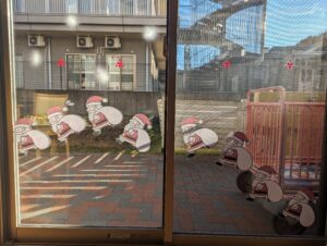 デイサービスの窓ガラスは、クリスマスを待つばかりになっています。