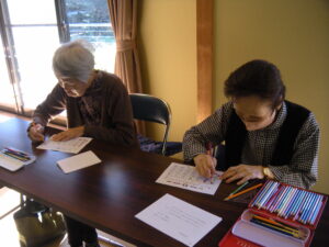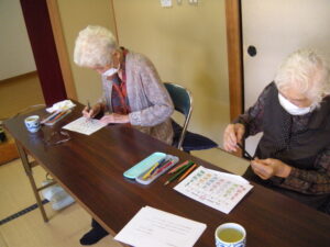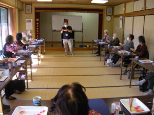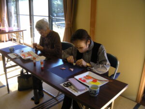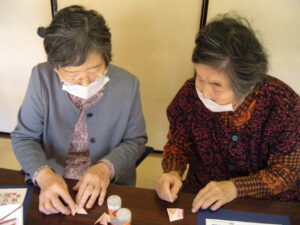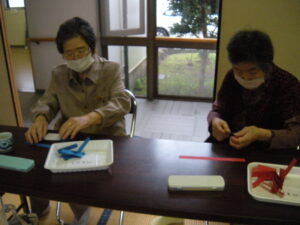 次にもみじの作り方を職員からお伝えして皆様作られました。