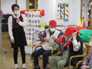 2025.10.28 デイサービスセンターぬく森 運動会 開催! 10月23日(木)~25日(土)まで運動会を行いました。 その日によって多少種目は違いましたが、皆様頑張っておられました。 選手宣誓から始まります。 皆様と体操をして運動の準備をしました。 物送りゲームや足踏みリレー等色々な種目をしました。 最後に勝ったチームの代表にはメダルが授与されました。 おめでとうございます。 運動会終了後はおやつを食べました。 とてもおいしかったです。 皆様お疲れ様でした。 楽しい一日になったら幸いです。 by tatsu