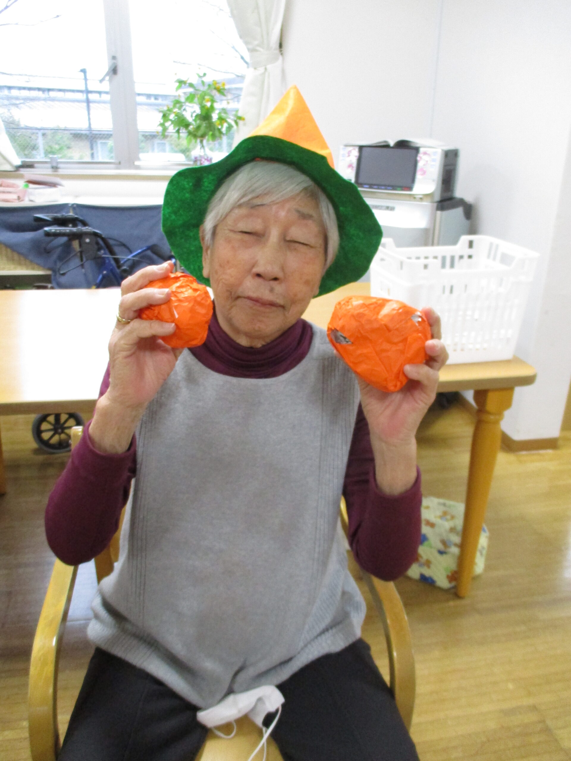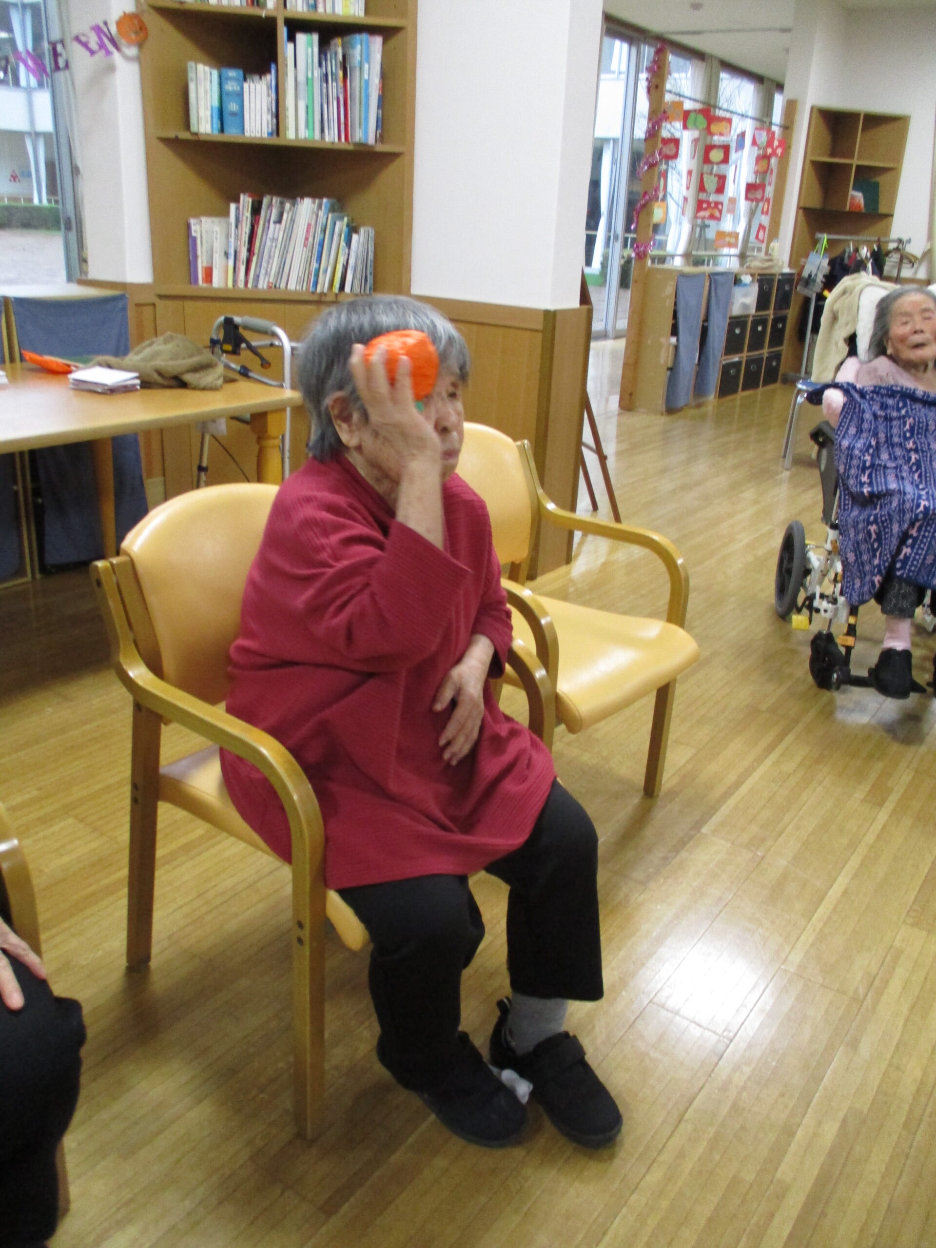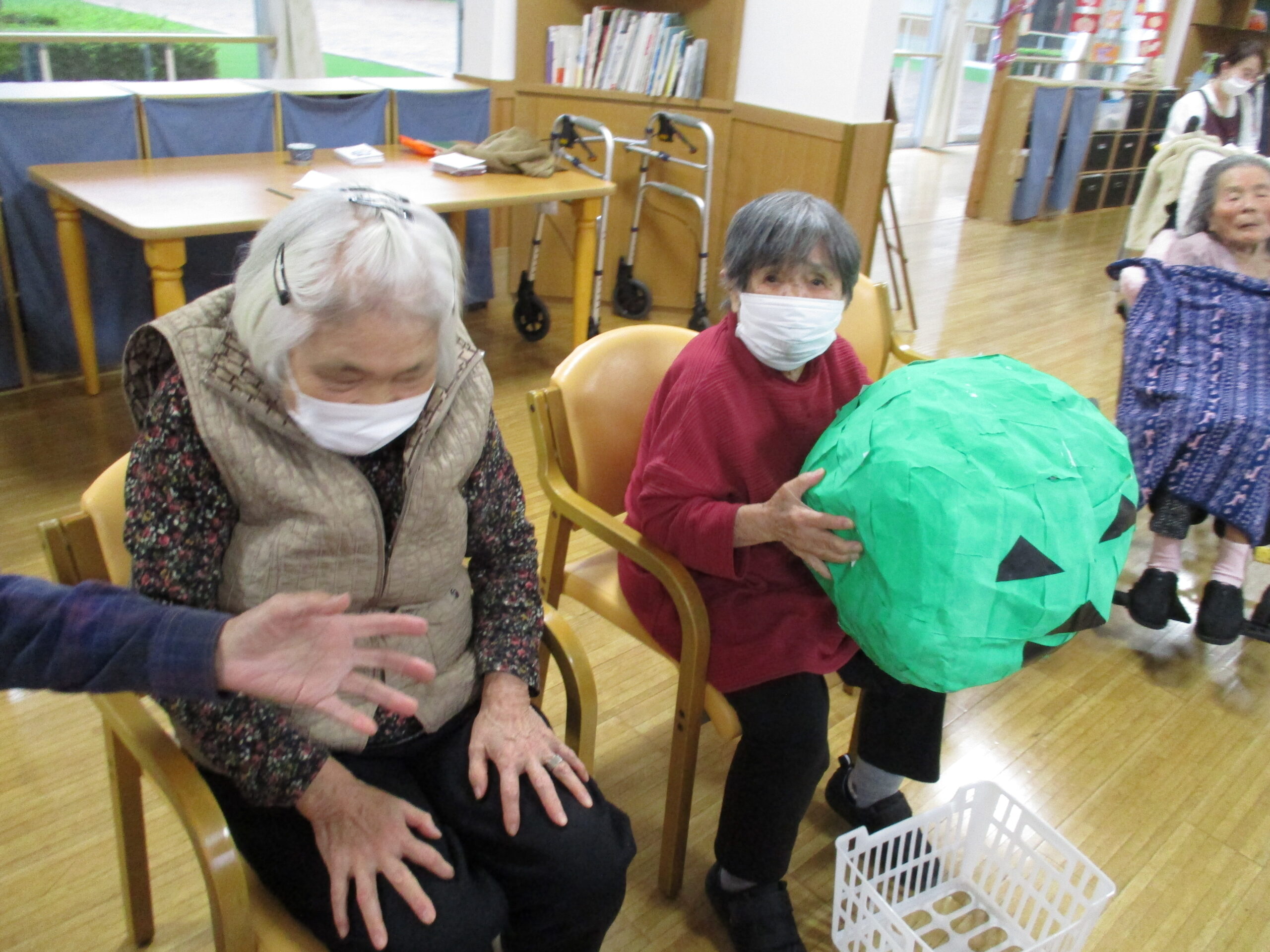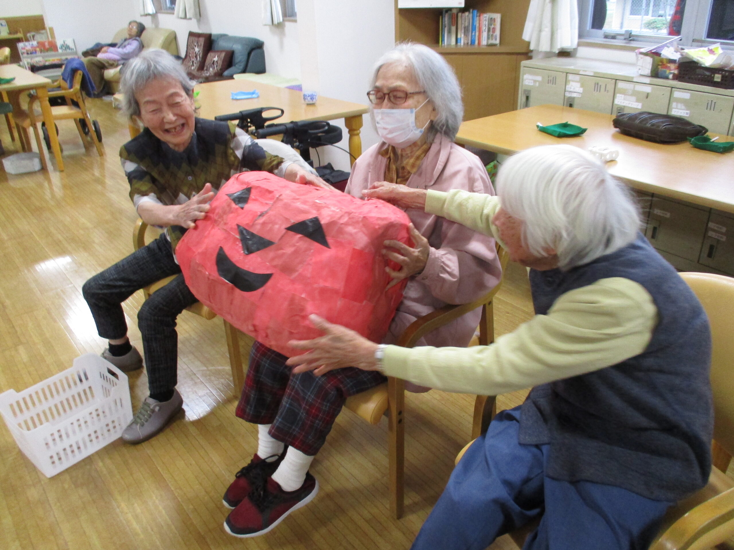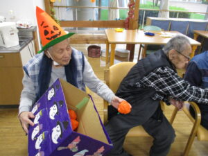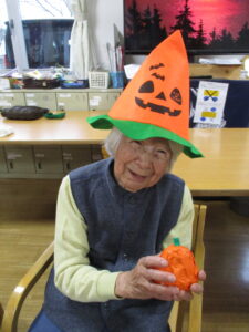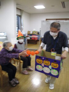 2025.11.07 デイサービスセンターぬく森 ハロウィンイベント 開催! 10月31日にハロウィンイベントを行いました。 ハロウィンにちなんだレクを行いました。 物送りゲームを行いました。 初めに小さいカボチャ?から物送りをしました。 次に送ったものは大きなカボチャです。 皆様大きさにびっくりしていました。 記念写真も撮りましあ。 最後に玉入れゲームを行いました。 ホロウィンの飾りのついた箱を職員が動かし皆様が動いている箱に入れるゲームです。 白熱しました。 とても楽しい一日でした。 ありがとうございました。 by tatsu