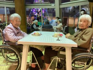 利用者の皆さまも心待ちにしていたご様子で、目を輝かせてツリーをご覧になってみえます