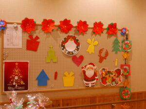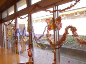 朝より利用者様にもお手伝いいただき、いつものデイルームをクリスマス仕様に模様替🎄