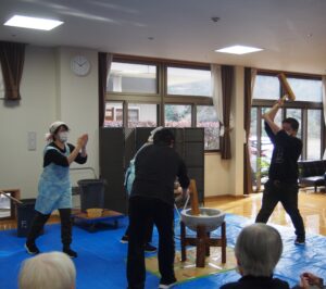 例年、感染症の流行で施設内での餅つき大会を行っていましたが、