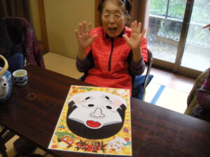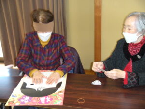 福笑いと百人一首での