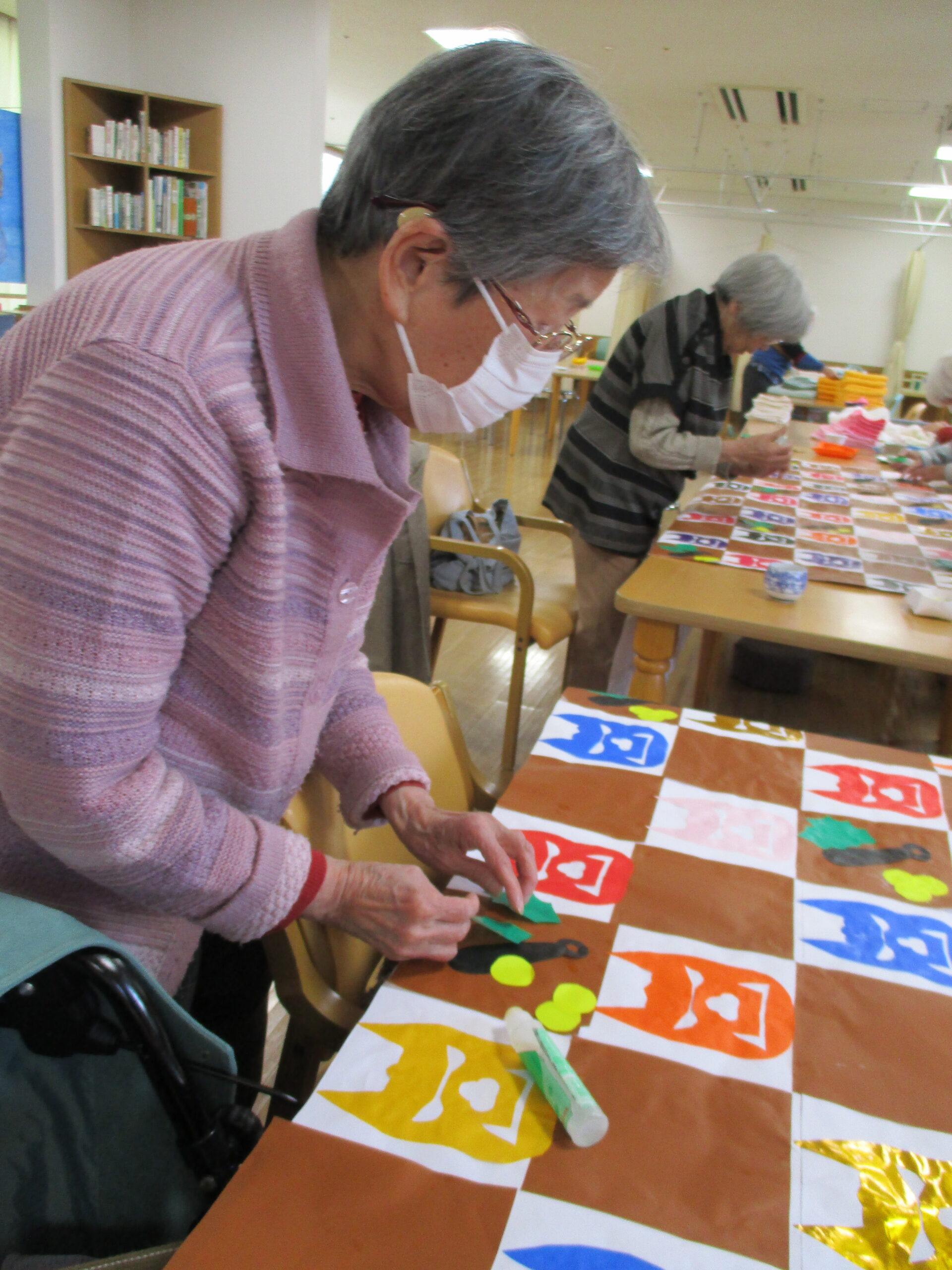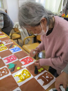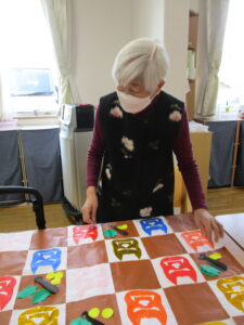 台紙に鬼や折り紙を貼っていきました。