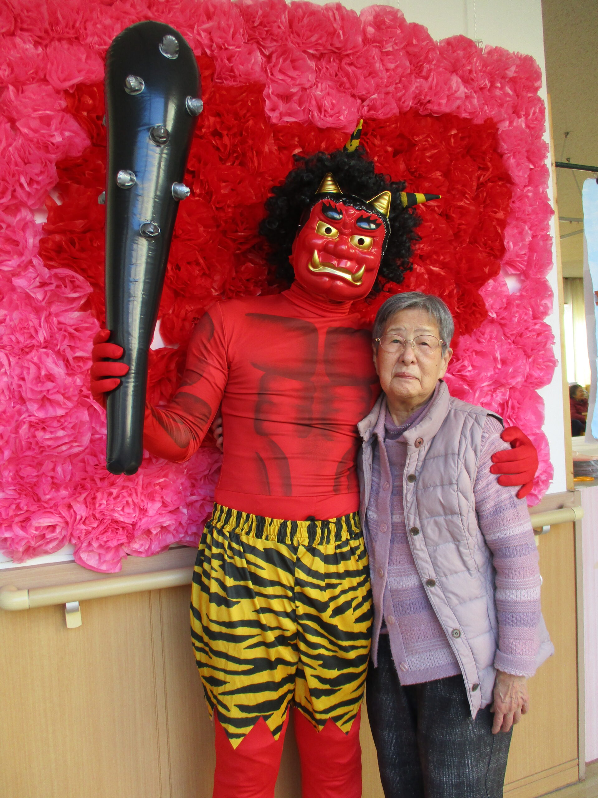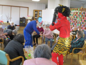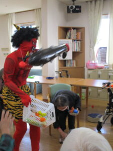 2026.02.04 デイサービスセンターぬく森 節分イベント開催! 2月2日(月)3日(火)に節分イベントを行いました。 初めに体操を行い、節分のクイズをしました。 おにが登場し盛り上がりました。 次にかごに玉入れを行い、準備運動をしました。 ここからが本番の鬼退治です。鬼にめがけて投げました。 最後に皆様と鬼の記念撮影をしました。 楽しい節分イベントになりました。 厄払いをしました。 今年も良い年になりますように! by tatsu