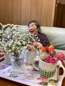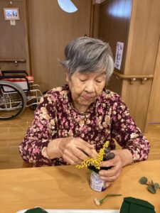 ユニット華では、春を感じていただこうとフラワーアレンジメントを行いました。