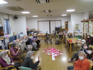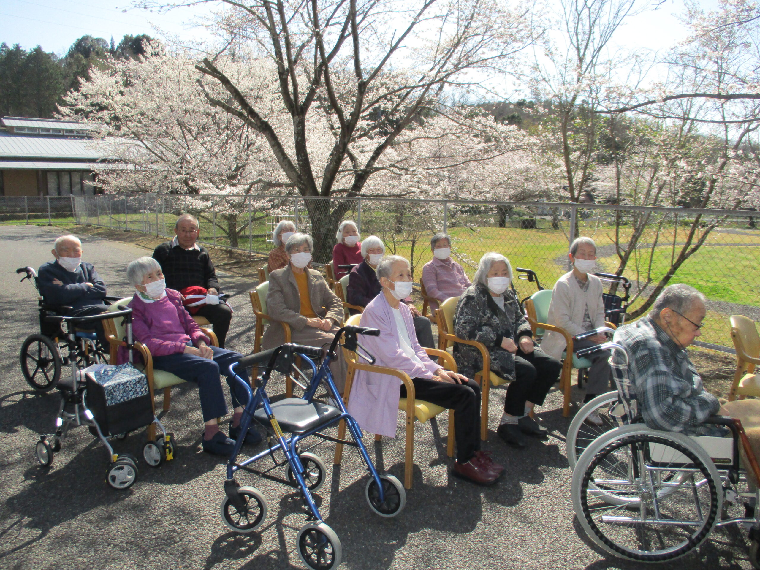 2026.04.15 デイサービスセンターぬく森 お花見イベント 開催!! 3月末から4月初めに桜がきれいに咲きました。 皆様と一緒に外で桜を見ながら、お話や体操、歌を歌いました。 きれいな桜の前で記念写真も撮りました。 花見レクも行いました。 今年は雨が降り、満開の時期が少ないように思いました。 残念ですが、皆様花見イベントを楽しまれていました。 by tatsu