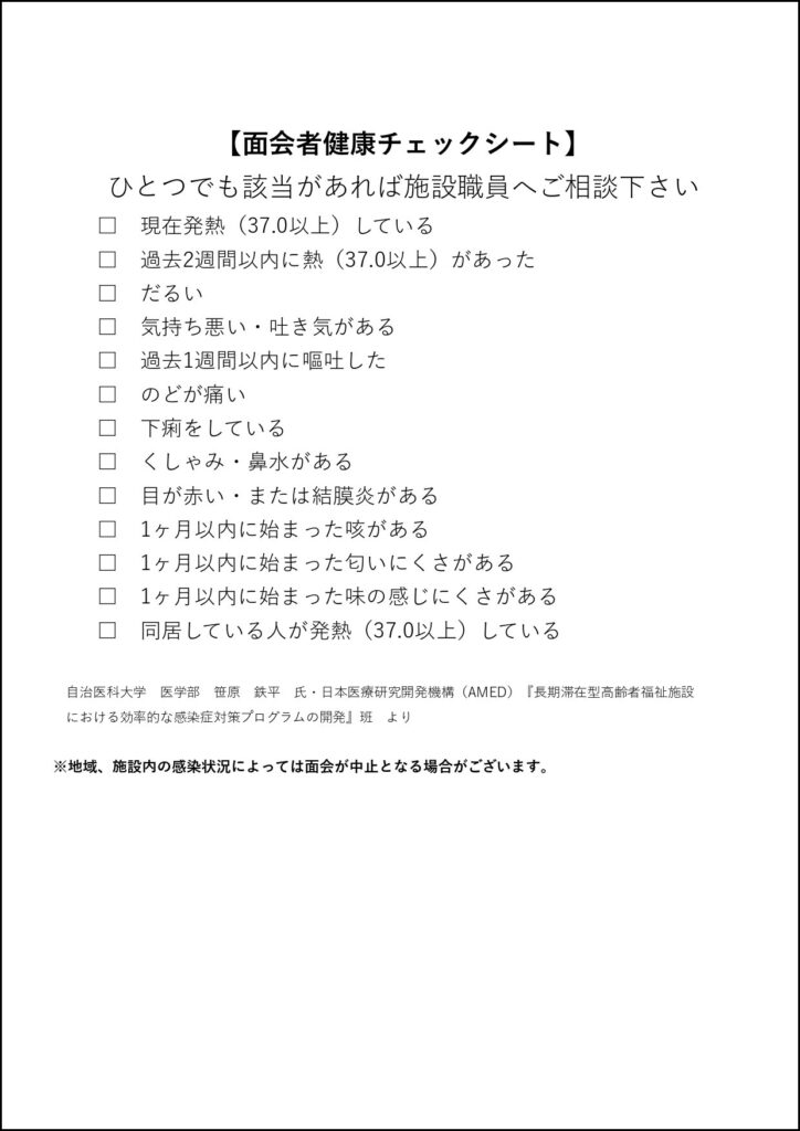 ◇施設面会時の留意事項と健康確認について(R7.12.1)